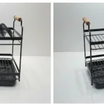 جا ظرفی دو طبقه با طراحی مدرن و ترکیب فلز مشکی مات و دستههای چوبی طبیعی، مناسب آشپزخانههای مینیمال و شیک است. ساختار مقاوم فلزی آن با روکش ضد زنگ، استحکام بالا و عمر طولانی دارد. طبقهی بالایی برای چیدن بشقاب و فنجان طراحی شده و بخش کناری مخصوص قاشق و چنگال است. طبقهی پایین دارای سینی جمعکنندهی آب برای حفظ تمیزی سطح کابینت میباشد. وزن سبک، ظاهر لوکس و فضای کمجا از ویژگیهای برجستهی این محصولاند.