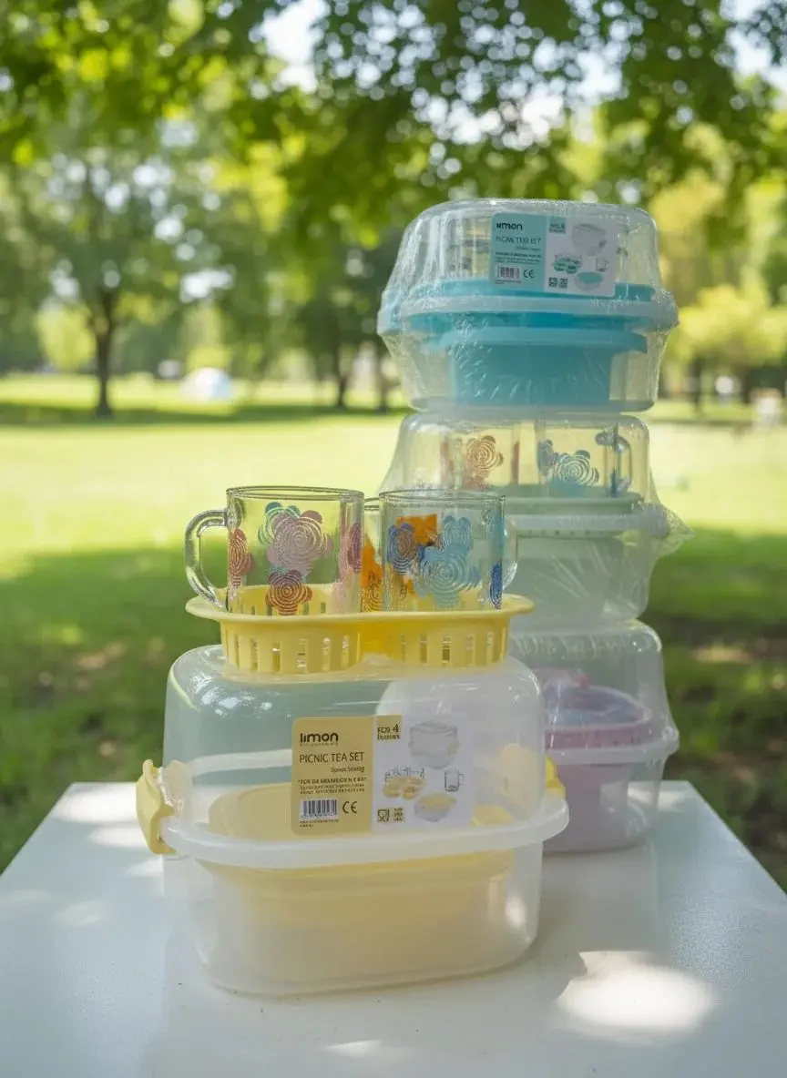 ست پیک‌نیک چای لیمون، انتخابی هوشمندانه و شیک برای عاشقان طبیعت و سفر است. این ست کاربردی شامل لیوان‌های شیشه‌ای طرحدار و ظروف پلاستیکی مقاوم است که همگی در یک باکس شفاف و محکم قرار گرفته‌اند. طراحی کم‌جا، درب قفل‌دار و رنگ‌بندی ملایم آن باعث می‌شود به‌راحتی در سبد پیک‌نیک یا صندوق ماشین جا بگیرد.