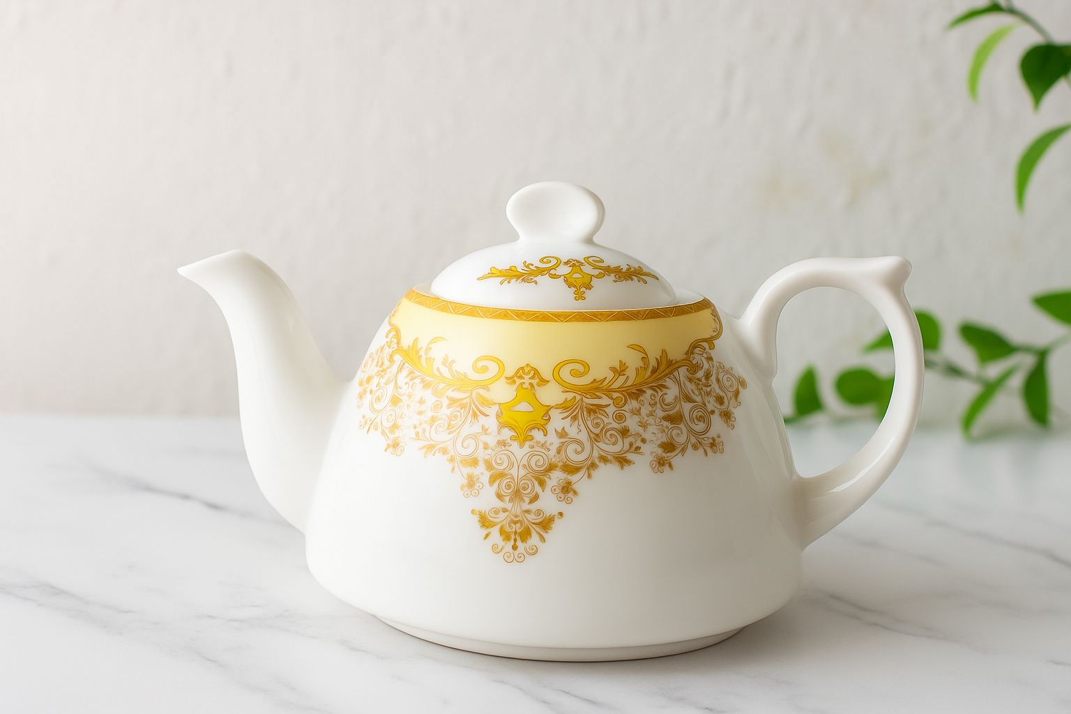 در نگاه اول به این قوری، هارمونی بی‌نقصی از ظرافت هنری و عملکرد روزمره به چشم می‌آید. بدنه‌ای از سرامیک مرغوب، لعاب‌خورده و صیقلی، که نه‌تنها جلوه‌ای لوکس و ماندگار دارد، بلکه دوام بالایی در برابر حرارت و استفاده طولانی‌مدت ارائه می‌دهد. طرح طلایی کلاسیک که بر سطح سفید خالص آن نقش بسته، یادآور هنرهای تزئینی اصیل است؛ طرحی که با دقت و ظرافت روی بدنه و درب قوری نشسته و آن را به یک اثر هنری کوچک و قابل‌استفاده در خانه تبدیل کرده است.